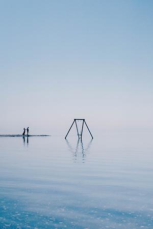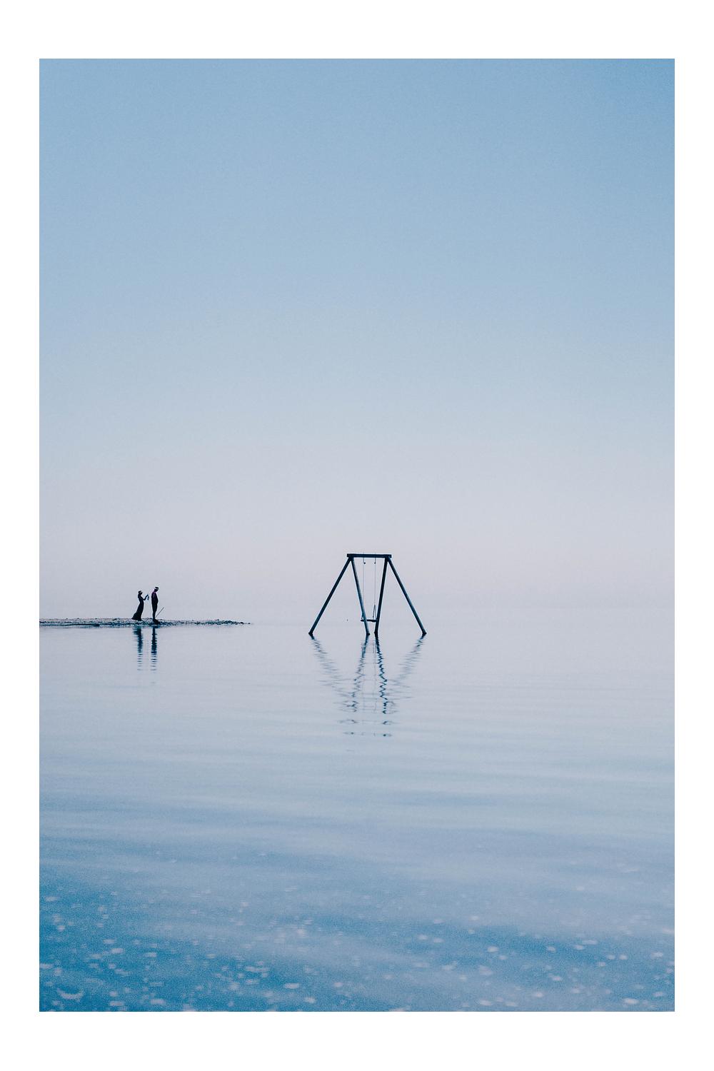 A couple stands on the invisible horizon gazing upon the Sea